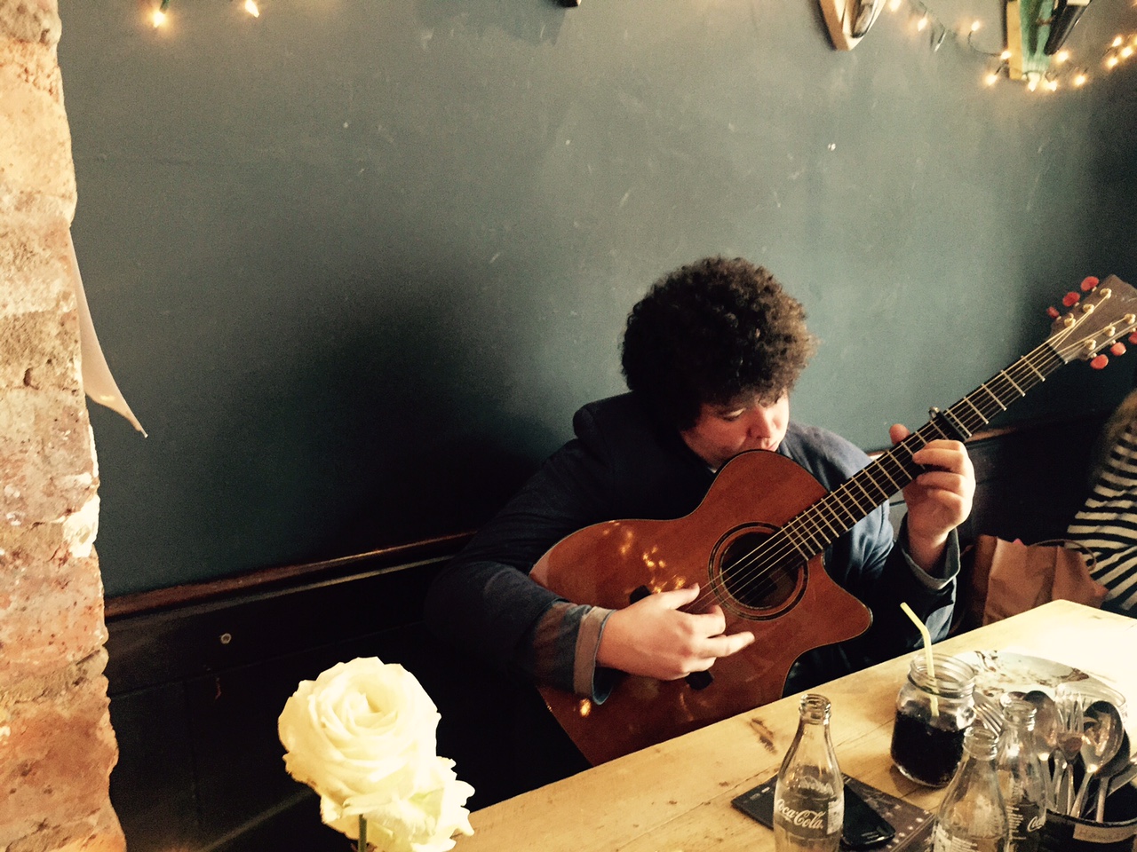 As we chat, the hypnotic sound of an acoustic guitar and a mesmerising voice float up to our table at the back of the cafe. I ask Danielle who this mysterious talent is and she informs me that he just happens to be Harvest Moon open mic regular, singer/songwriter/musician Jonathan Coley from Chester. Words really can’t do justice to his immense talent, so I’m simply going to say that you have got to catch him live if you get the chance. More info can be found below.
