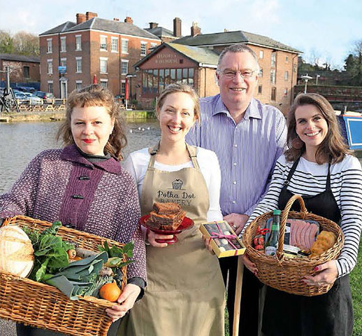 Meet the producers: Lisa (left) and Katie (right) with some of the producers working hard to deliver tasty food and drink to the Chester Food Assembly Photo: Courtesy of Cheshire Life