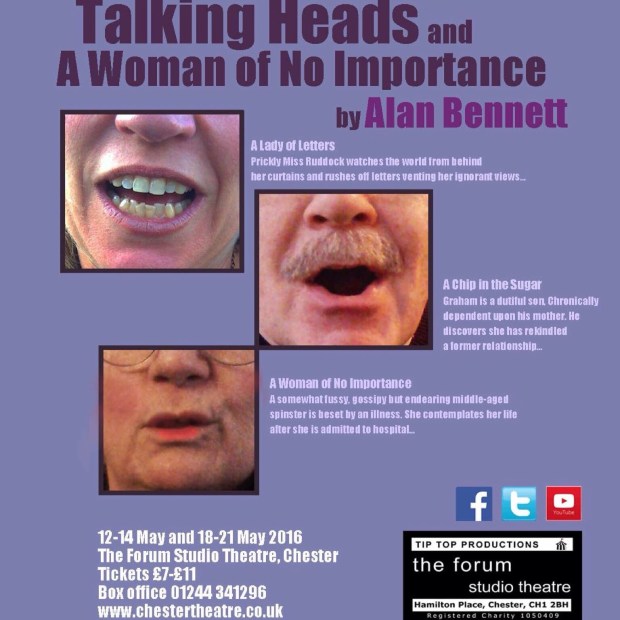 We Are Chester’s Paul Clark reviews the latest offering from Tip Top Productions: Alan Bennett’s classic monologues Talking Heads. The show was staged at the Forum Theatre in Chester. Photos courtesy of Tip Top Productions.