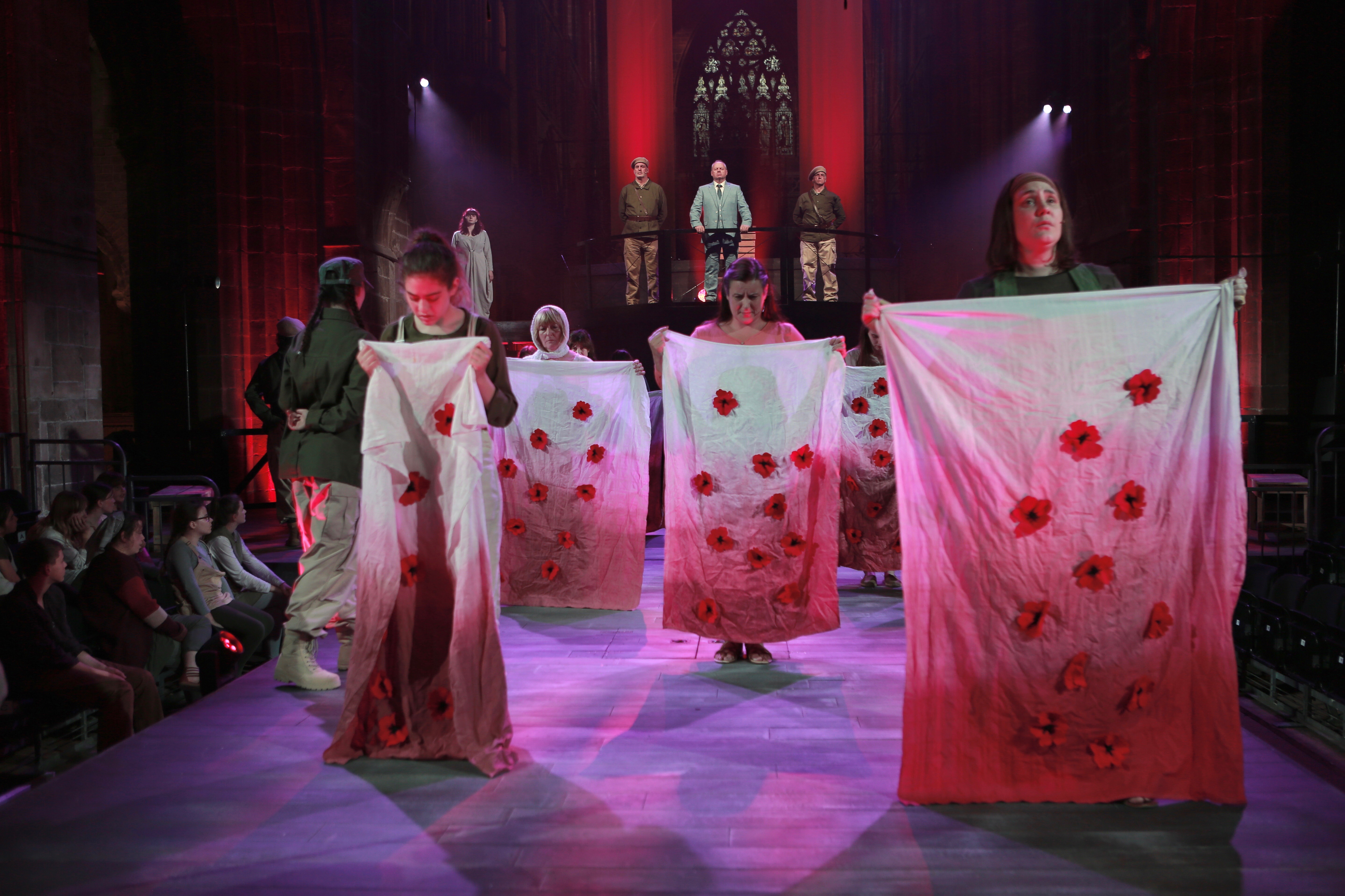 The attention to detail in the art of the play is highly evident in the closing poignant scene of the first half during the killing of the newborns. A blood stained red cloth with poppies is revealed as mothers cry out ‘My son!’ This is undeniably a heartbreaking and emotional point of the tale.