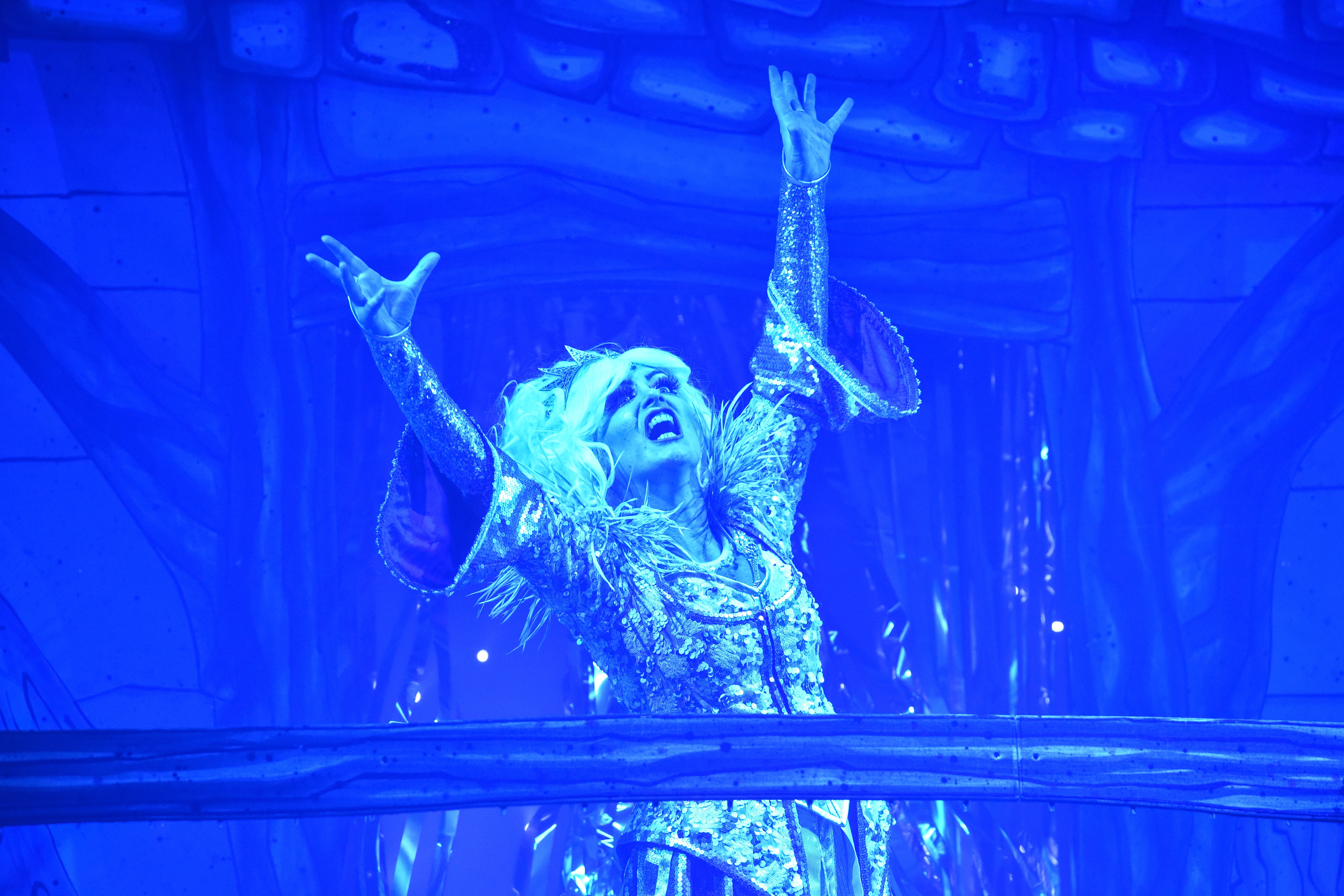 Lloyd Gorman is a captivating and rather loveable henchman to Viletta, known as Hench. He desperately tries to win Viletta’s cold heart. And Nicola Martinus-Smith enchants as the delightfully bouncy and glittery fairy Snowdrop, while Barbara Hockaday (Sensa/Speedwell/Babs the sheep/Santana and Whippet) shimmies across the stage in an array of fantastic outfits, ably demonstrating her versatility, which included belting out a number of songs.