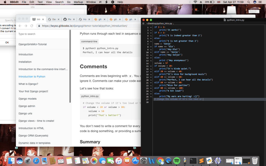 Our goal for the day was to build a blog. We used Python, GitHub, and I also used BBEdit. For me, the day was a really good way of putting problem solving into practice. It can sometimes be frustrating, and easy to give up on technology when it’s not going your way, but when it did work, it was so rewarding to see it all come together as we went along. My group had Doug as our mentor who was a great help and brilliant with any questions that we had – I had a lot!