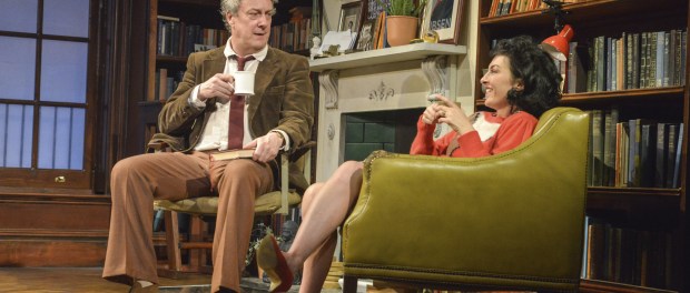 The power of this play comes from its simplicity. Two actors conversing about literature and life in just one room. This room is, for those who don’t know, Frank’s university office – a room which set designer, Patrick Connellan, has saturated with academia. The large bookcases topped with overfilled files, the dominant wooden desk, and a less spectacular ‘student’ desk sit as the perfect foundation for cultivating the very complex relationship between the characters. Indeed, the brazen, uneducated Rita uses the set fantastically. Initially, Director Max Roberts has Rita migrating around the room with no real place. However, as she develops, both academically and socially, she finds a firmer position in no other than Frank’s desk chair. Meanwhile, Frank distinctly descends deeper and deeper into alcohol-fuelled despair, landing ironically in the seat in front of the ‘student’ desk.