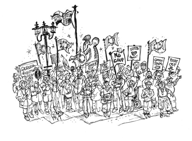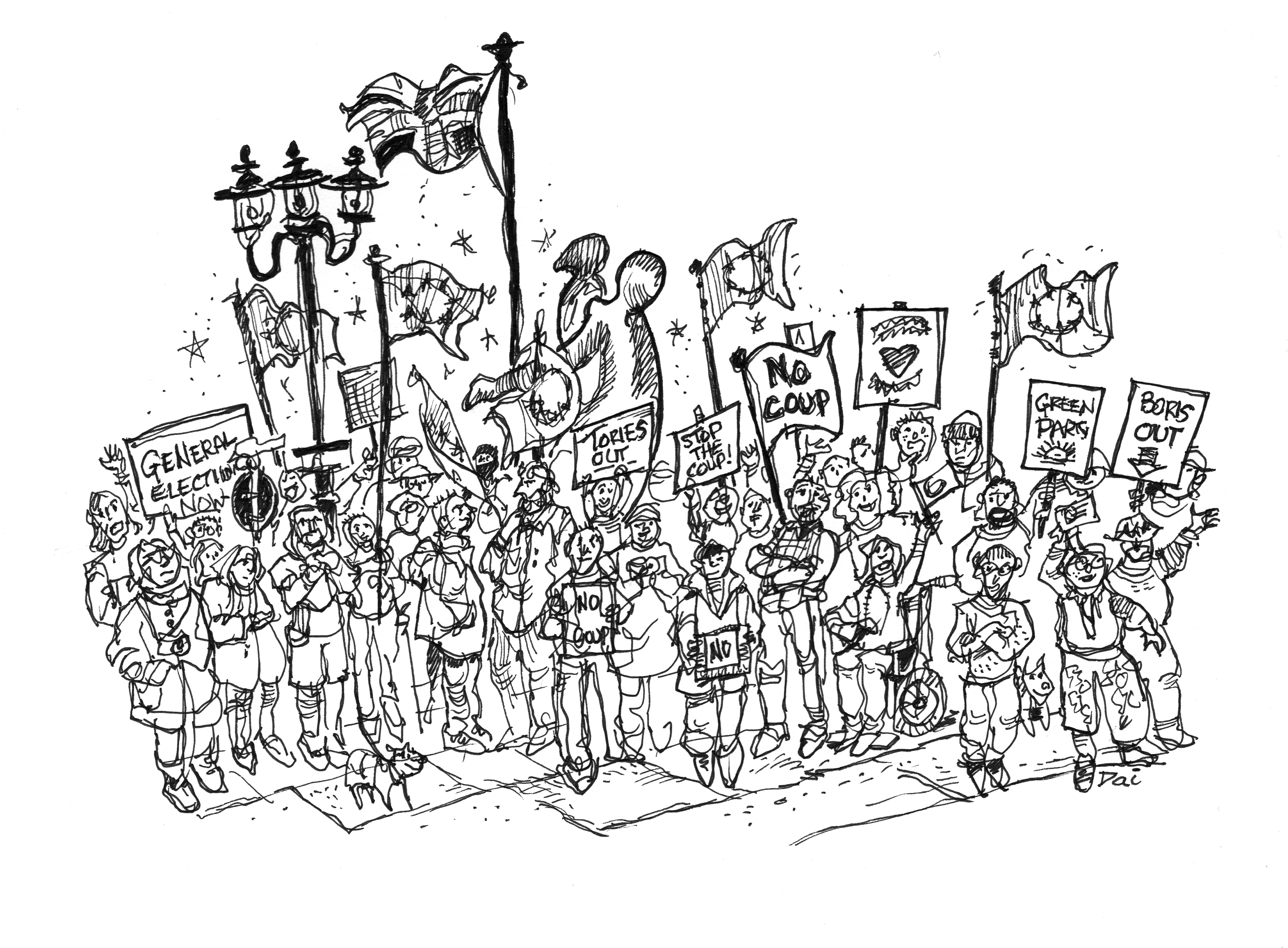 Hundreds of people took to the streets of Chester to protest against Boris Johnson’s plans to shut down Parliament. And our artist Dai Owen was there to cover it, along with our editor Angela Ferguson.