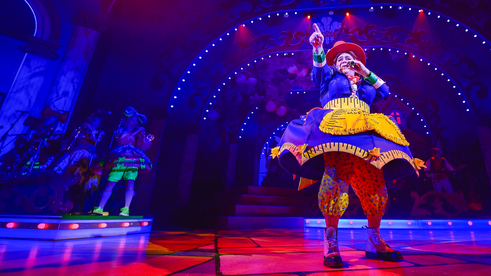 The show’s opening, more in traditional fairy-tale style, was beautifully staged before the set burst into life and we were in the more familiar surroundings of Pantoland.