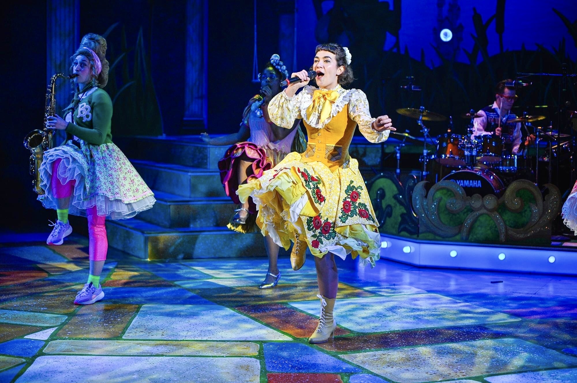 Izzy Neish as Belle in Beauty and the Beast – The Rock n Roll Panto at Theatr Clwyd