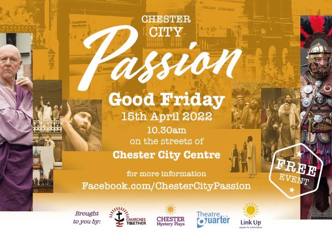 For more information on the Chester City Passion, which is a partnership between Theatre in the Quarter, Chester Mystery Plays, Link Up and Churches Together in Chester, visit https://chestermysteryplays.com/discover/citypassion/.