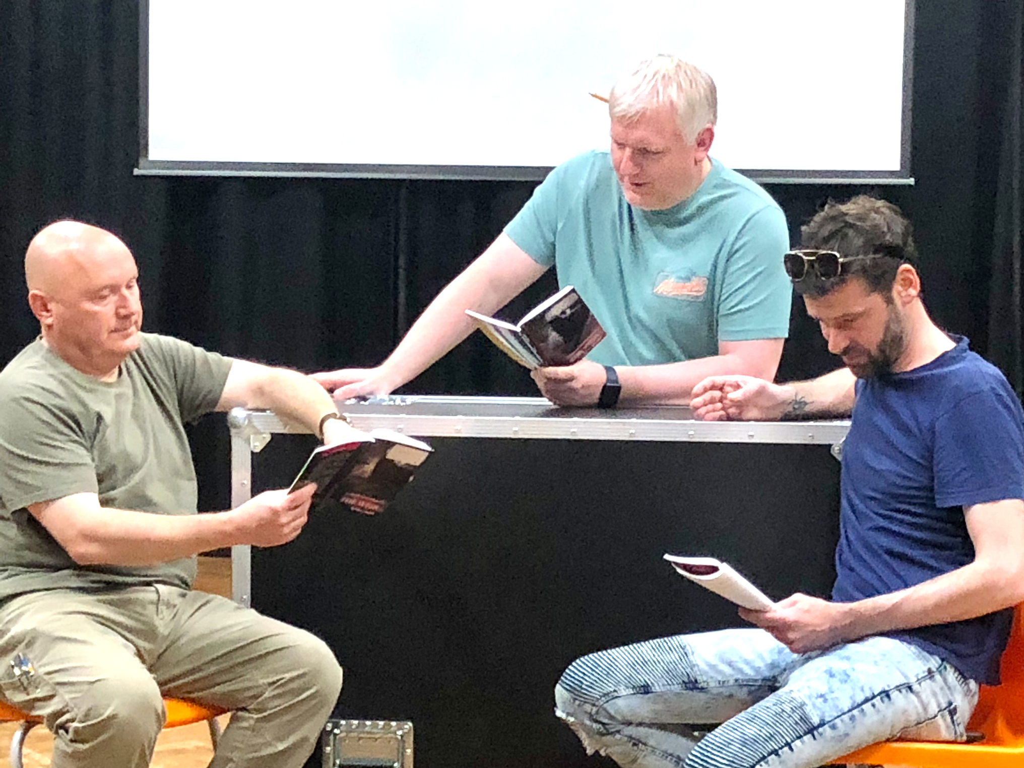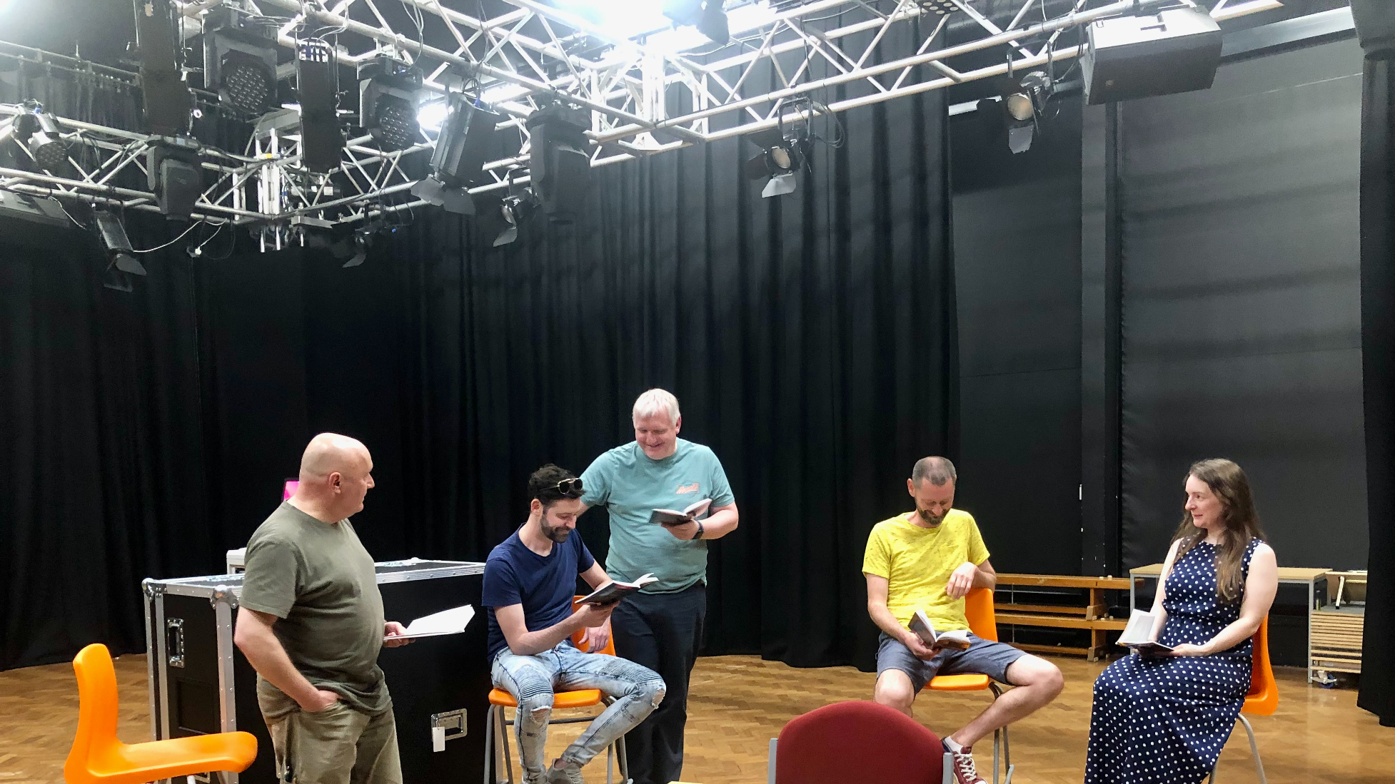 Cast members Mark Newman, Stuart Evans, Dhugal Fulton, Simon Phillips and Laura Smith recently joined Marian Newman for a first read-through of the script as rehearsals got underway.