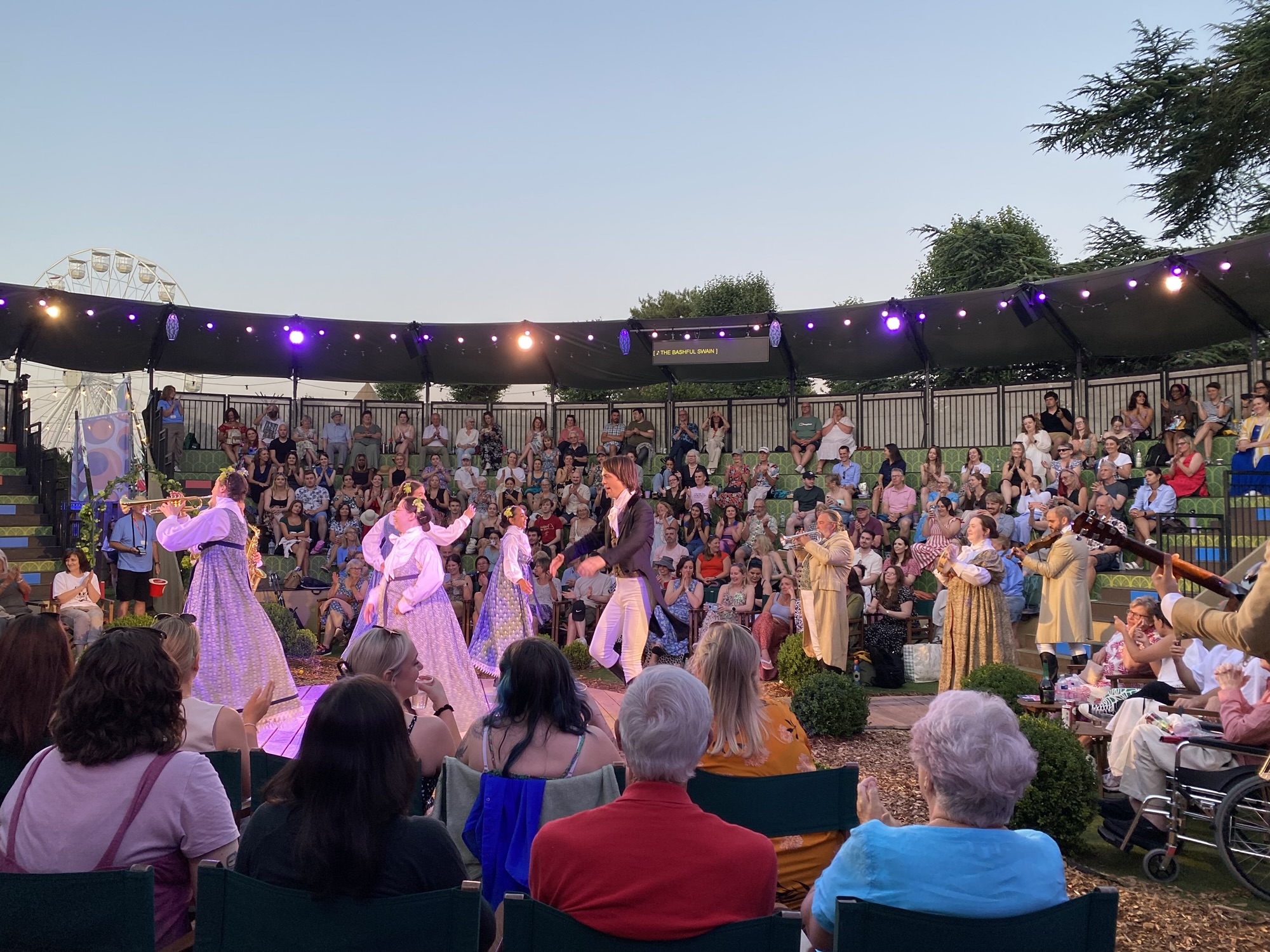 As ever, it’s lovely to see the audience tucking into either homemade picnics or delicious-looking wood-fired pizzas bought at the theatre.